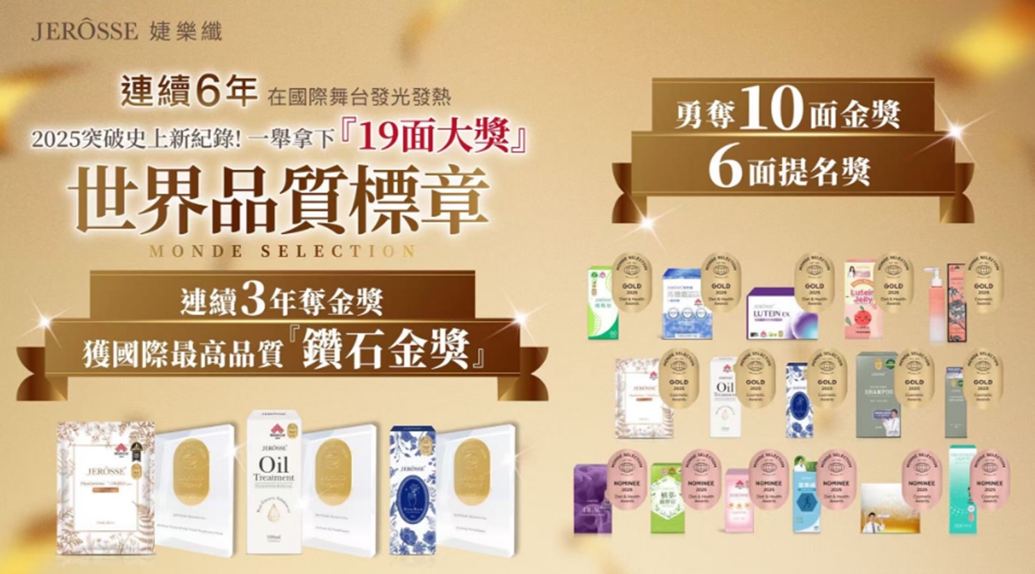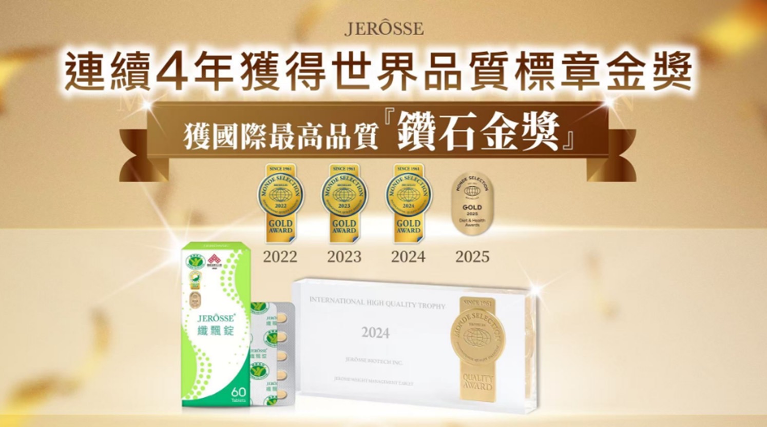 JEROSSE 婕樂纖 高機能益生菌 連續五年 世界品質大賞 鑽石金獎